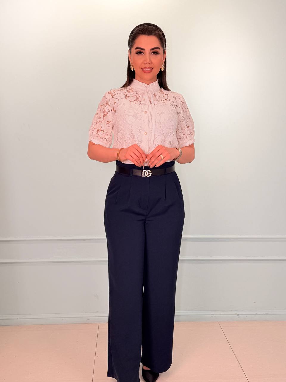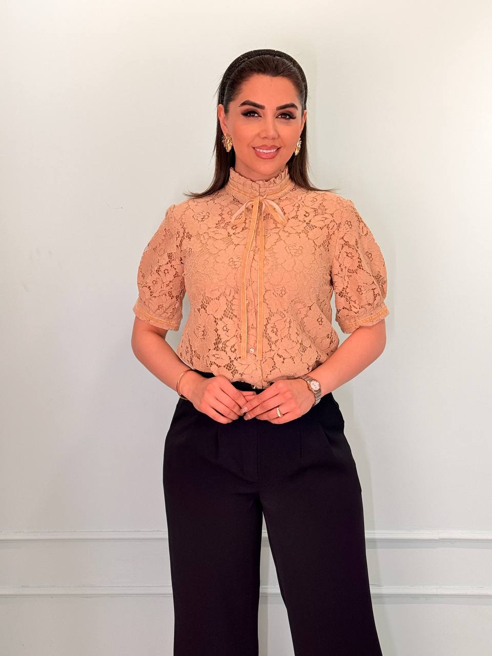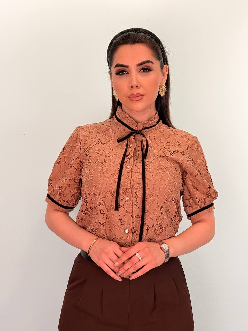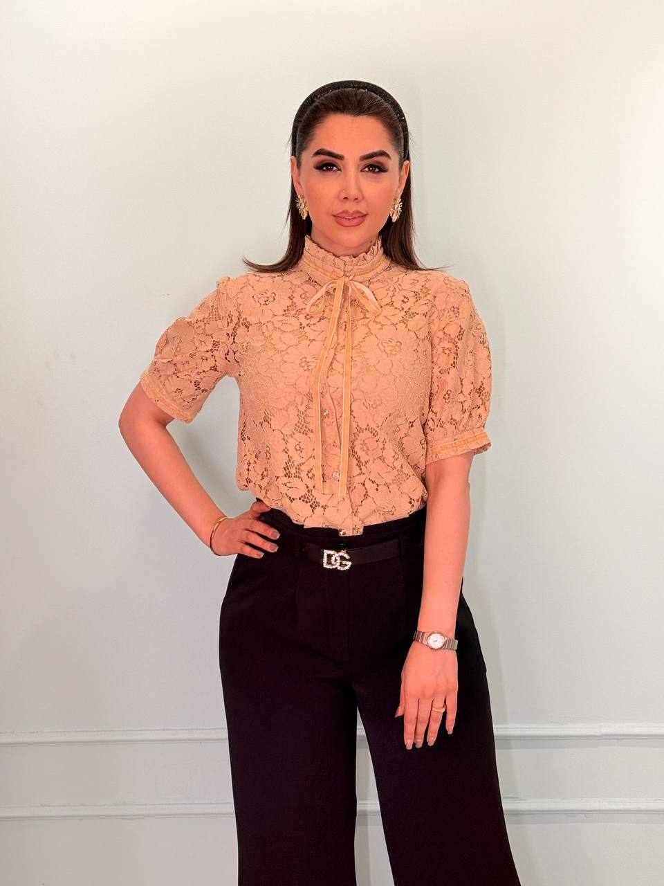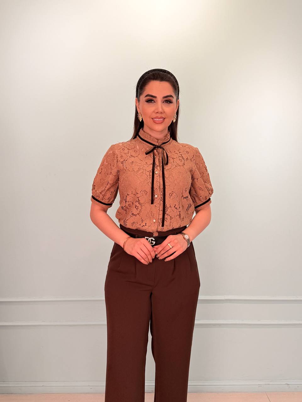شوميز دانتل يقه ايستاده غزل با پارچه کتان قیطان زيبا و طراحی ساده ولی شیک، مناسب برای استفادههای روزمره و رسمی است. قد و آستین ثابت این مدل، راحتی و نظم را حفظ کرده و آستین نواردوزی شده زیبایی خاصی به استایل میبخشد.تاپ جداگانه این مدل زیبایی دو چندان به مدل داده و از بدن نمایی کار جلوگیری میکند. این شوميز با شلوار یا دامنهای مختلف بهخوبی ست میشود و برای خانمهایی که دنبال ظرافت و کیفیت هستند، گزینهای عالی است.