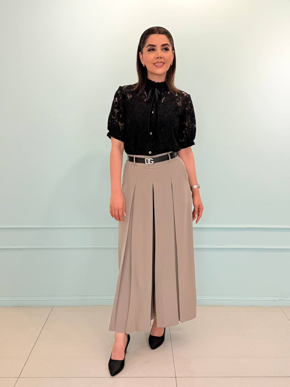شلوار دامني یکی از گزینههای سبک و راحت برای فصل گرماست. این شلوار از پارچهی كرپ كنزو و لطیف دوخته شده و با ريزش عالي پارچه ،پوششی مطمئن و بدون بدننمایی ارائه میده. طراحی پلیسهای باعث میشه تنخور این کار بسیار خاص و شیک باشه و برای انواع موقعیتهای روزمره یا دورهمیهای دوستانه قابل استفاده باشه.کمر کشی و آزاد بودن فرم شلوار و فاق بلند آن، راحتی بیشتری به همراه داره و در چهار سایز کاربردی عرضه شده که بهراحتی با انواع بلوز یا تاپ ست میشه.