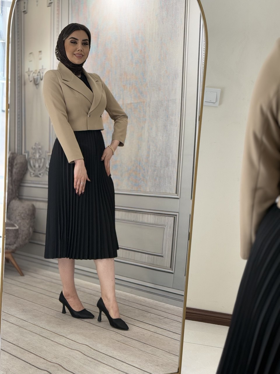 کت كوتاه مدل نگين یک انتخاب خاص برای خانمهایی است که به دنبال یک کت کوتاه و خوشفرم با استایل کلاسیک و رسمی هستند. پارچه مازراتی این کت بافتی با دوام و خوشفرم داره که در کنار طراحی دقیق و ظریف، اون رو برای موقعیتهای مختلف مثل جلسات، مهمانیها و حتی استایلهای شیک روزمره ایدهآل میكنه همچنين آستري زياي كره اي كار جلوه زيبايي خلق كرده.این مدل رو میتونی بهراحتی با شلوار پارچهای، دامن جذب یا حتی جین ست کنی و یک استایل شیک و متفاوت داشته باشی.
